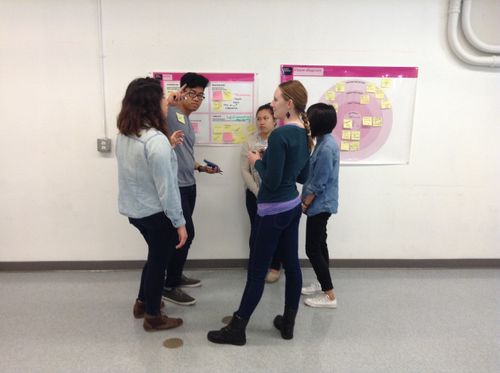 I noticed that many brainstorming sessions out in the wild just use post its, but post-its aren't great when you need to use a diagram. I printed out these diagrams, and I found out that kinko's actually has a custom whiteboard coating for posters.